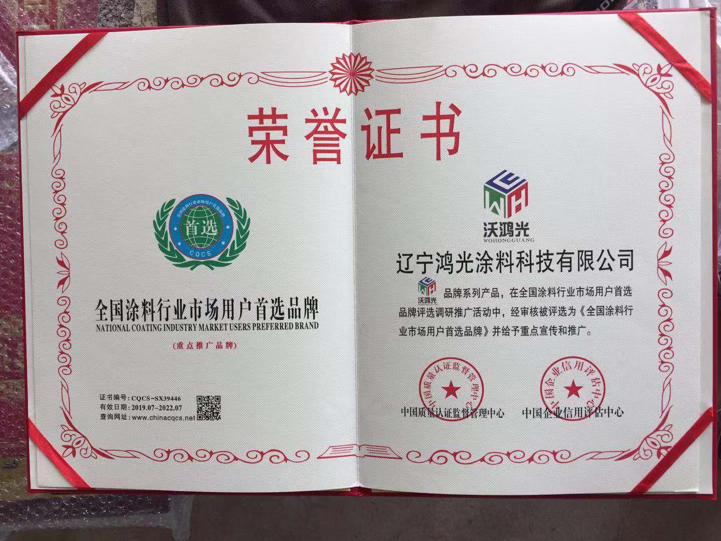 沃鴻光無機涂料被評為全國涂料行業市場用戶首選品牌